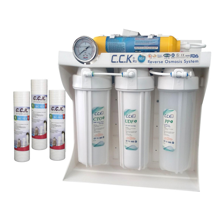 نحوه تعویض فیلتر ها : 5 ماه بعد از نصب و راه اندازی دستگاه فیلتر اول را تعویض نمایید. 5 ماه بعد نمونه آب تصفیه شده را با دستگاه سختی سنج تست کنید تا زمانی که سختی آب زیر 60 ppm است 5 ماه به 5 ماه فیلتر یک را تعویض کنید. اگر سختی اب زیر 100 بود سه فیلتر اول را با رعایت اصول کربن گیری عوض کنید . و اگر سختی اب بالای 150 شد سه فیلتر اول با ممبران تعویض گردد. توجه فیلتر 5 و 6 مربوط به طعم و مزه آب است.
